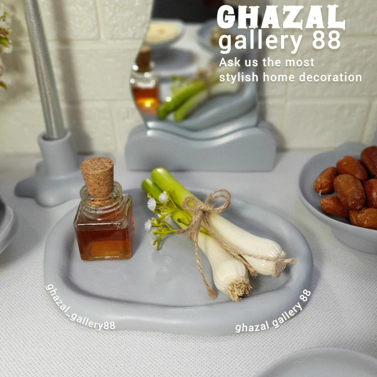 مشخصات کالا: شش عدد ظرف دفرمه یک عدد ظرف وسط شمعدان دو عدد اینه یک عدد گلدان دفرمه یک عدد